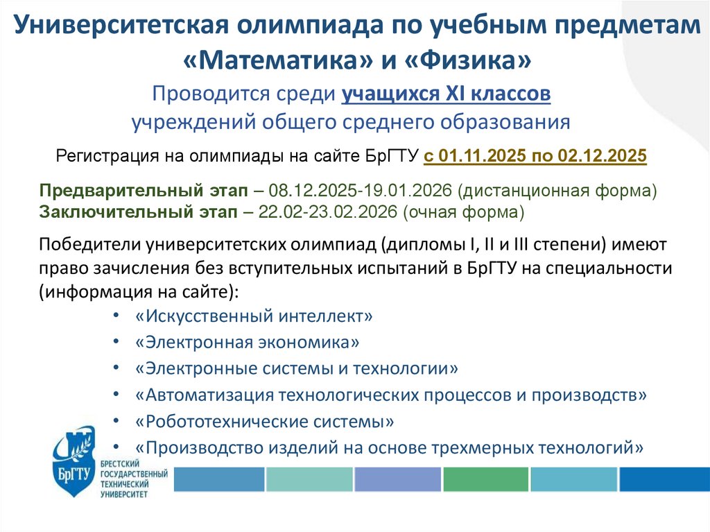 Регистрация на олимпиады на сайте БрГТУ с 01.11.2025 по 02.12.2025