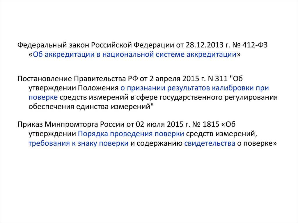 Федеральный закон Российской Федерации от 28.12.2013 г. № 412-ФЗ«Об аккредитации в национальной системе аккредитации»