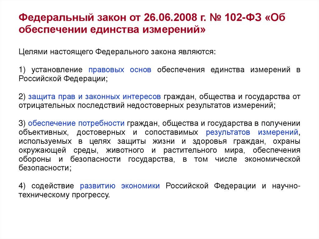 Федеральный закон от 26.06.2008 г. № 102-ФЗ «Обобеспечении единства измерений»