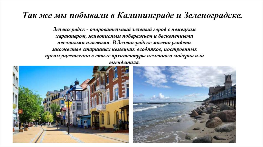Так же мы побывали в Калининграде и Зеленоградске.Зеленоградск - очаровательный зелёный город с немецким