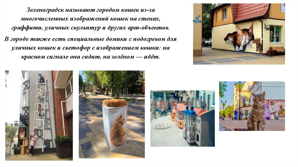Зеленоградск называют городом кошек из-замногочисленных изображений кошек на стенах,