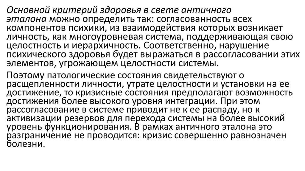 Понятие «психическое здоровье» выполняет функцию эталона, меры, т. е.