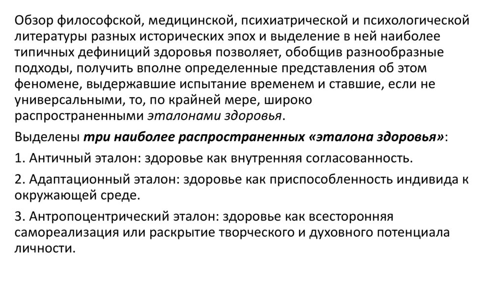типичных дефиниций здоровья позволяет, обобщив разнообразные