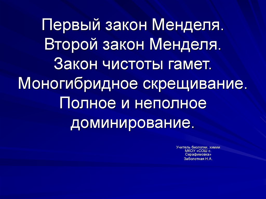 1. Первый закон Менделя. Второй закон Менделя. Закон чистоты гамет. Моногибридное скрещивание. Полное и неполное доминирование.