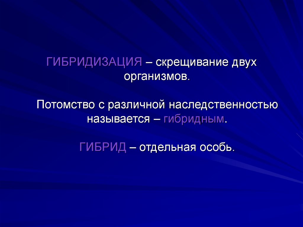 ГИБРИДИЗАЦИЯ – скрещивание двухорганизмов.