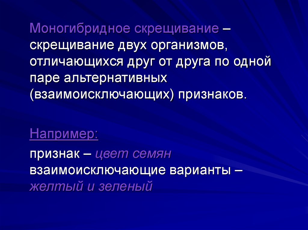 Моногибридное скрещивание –скрещивание двух организмов,