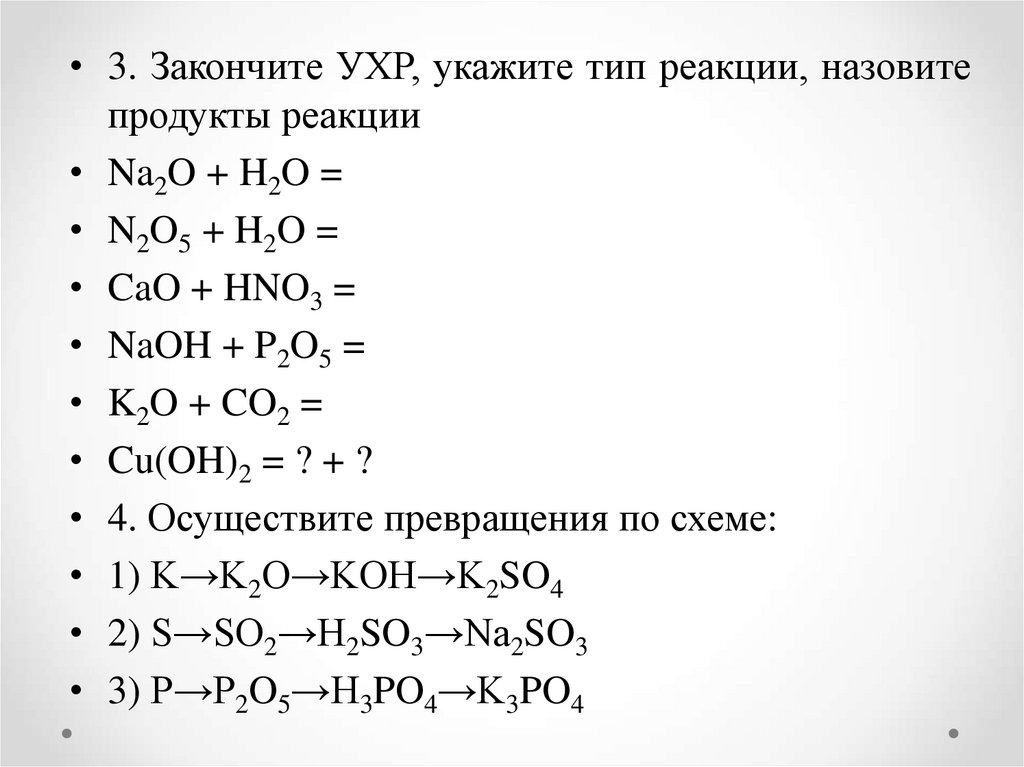 • 3. Закончите УХР, укажите тип реакции, назовитепродукты реакции