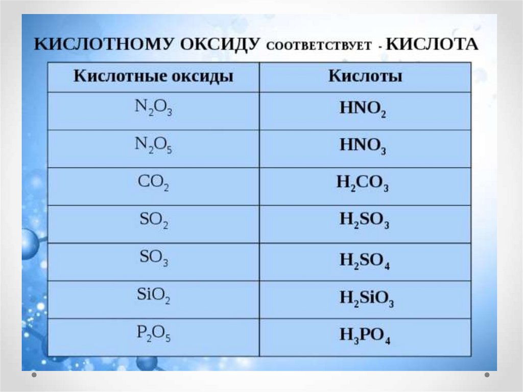 ХИМИЧЕСКИЕ СВОЙСТВА КИСЛОТНЫХОКСИДОВ