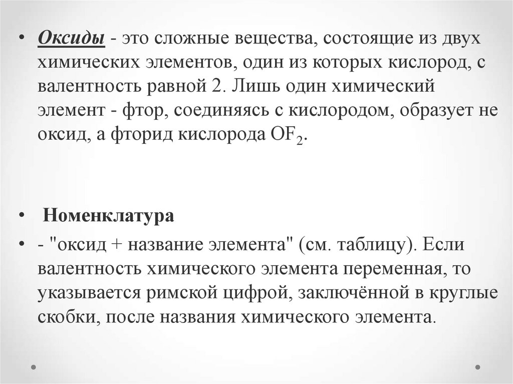 • Оксиды - это сложные вещества, состоящие из двуххимических элементов, один из которых кислород, с