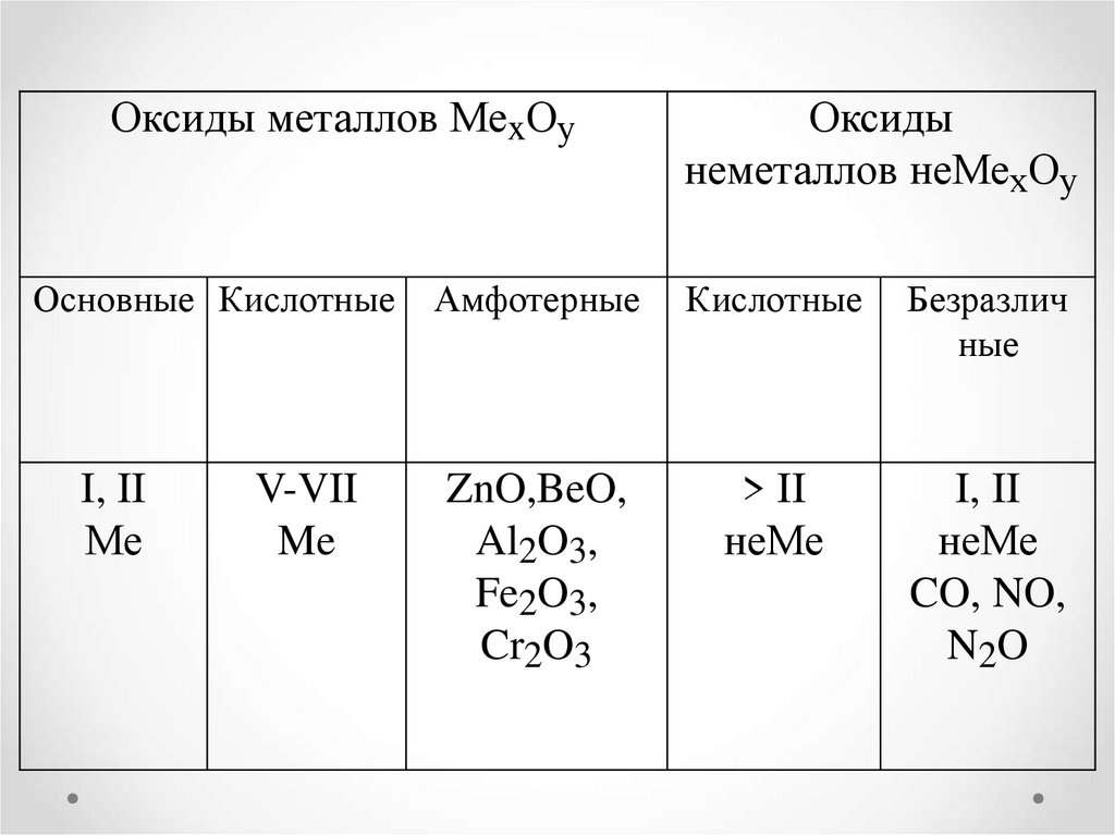 оксиды, безразличные оксиды, амфотерные оксиды и