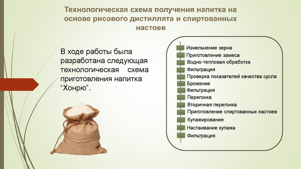 Цель работы: 1) разработка рецептуры напитка на основе рисовогодистиллята с использованием яблок и банана.
