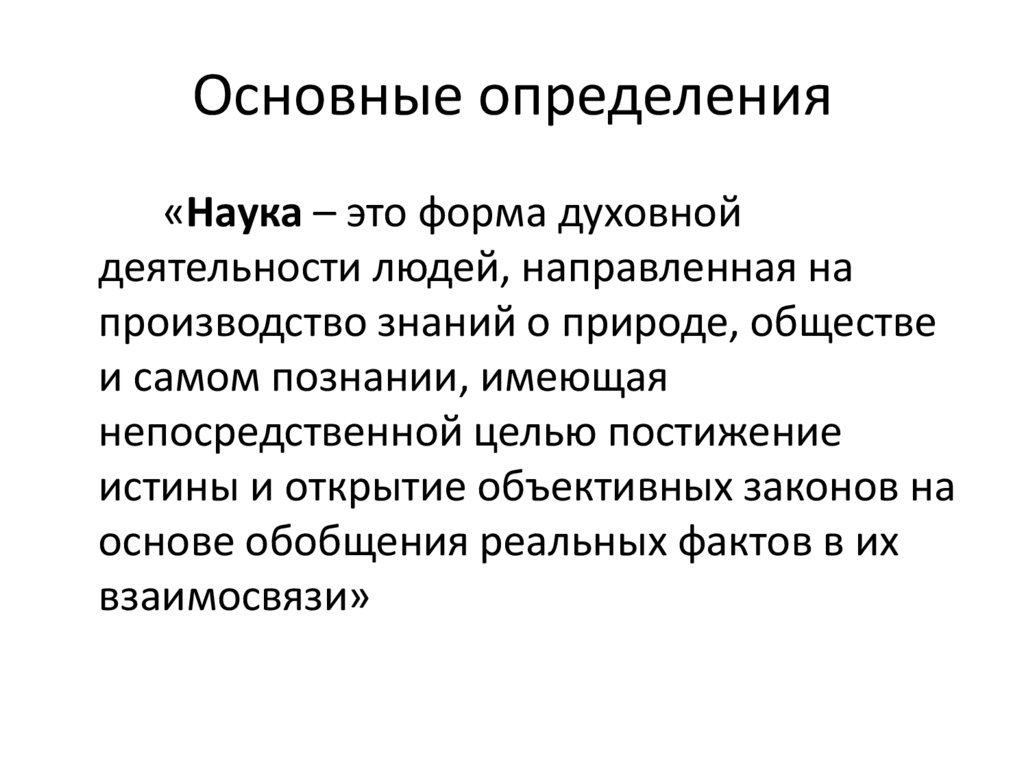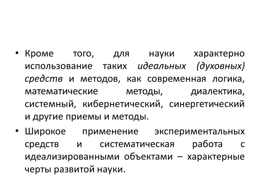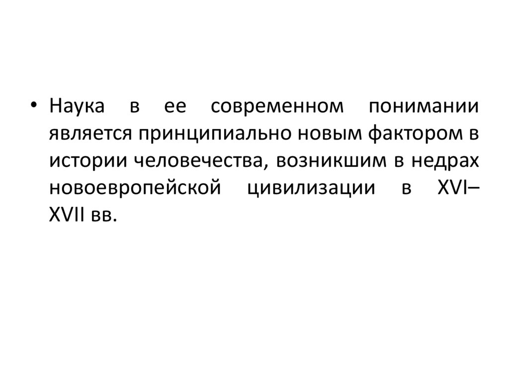 • Наука в ее современном пониманииявляется принципиально новым фактором в