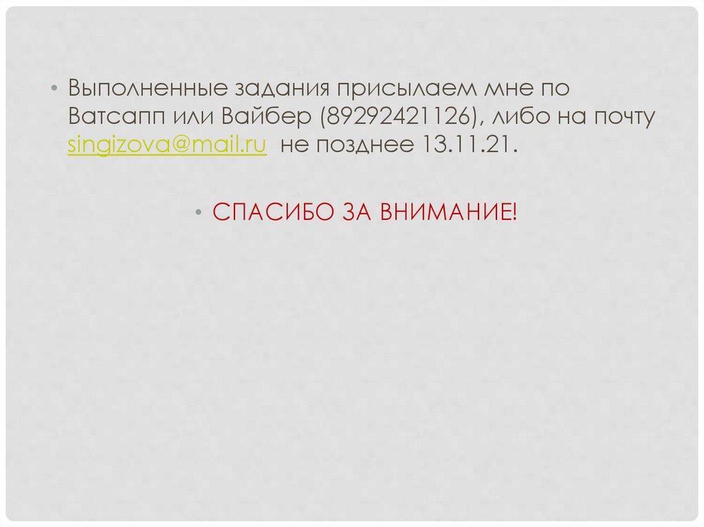 • Выполненные задания присылаем мне поВатсапп или Вайбер (89292421126), либо на почту