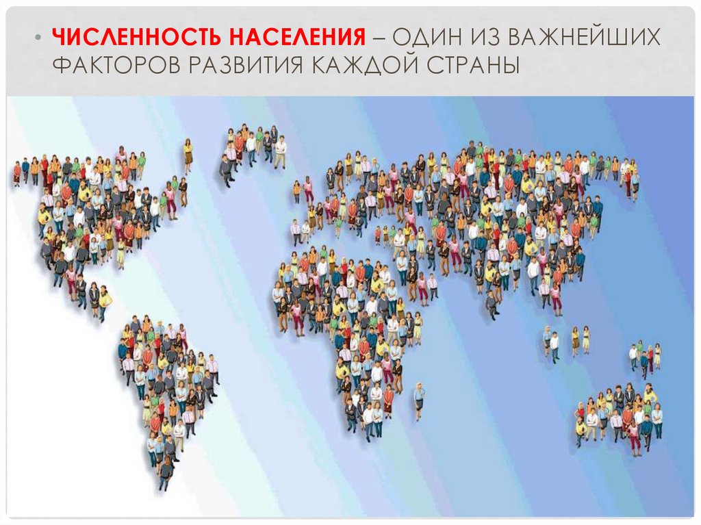 • ЧИСЛЕННОСТЬ НАСЕЛЕНИЯ – ОДИН ИЗ ВАЖНЕЙШИХФАКТОРОВ РАЗВИТИЯ КАЖДОЙ СТРАНЫ