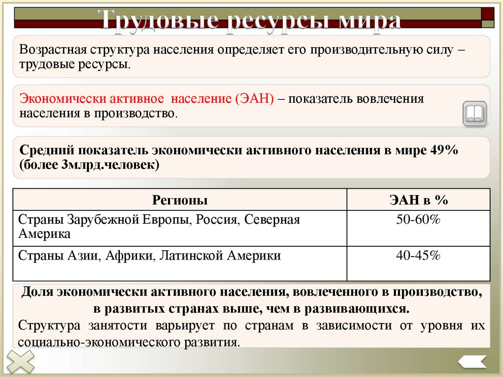 Трудовые ресурсы мираВозрастная структура населения определяет его производительную силу –