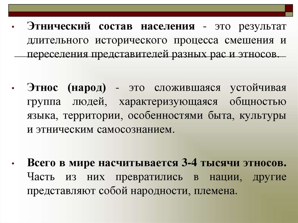 Всего в мире насчитывается 3-4 тысячи этносов.