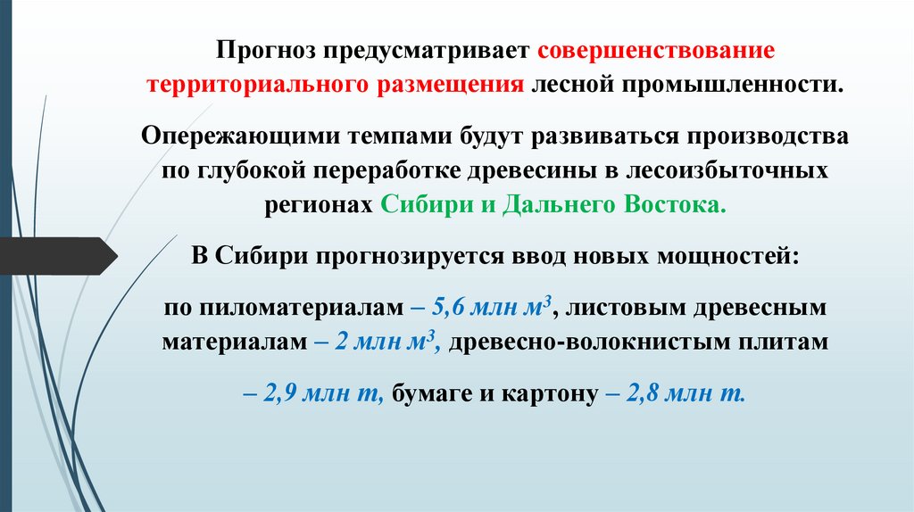 Прогноз предусматривает совершенствованиетерриториального размещения лесной промышленности.