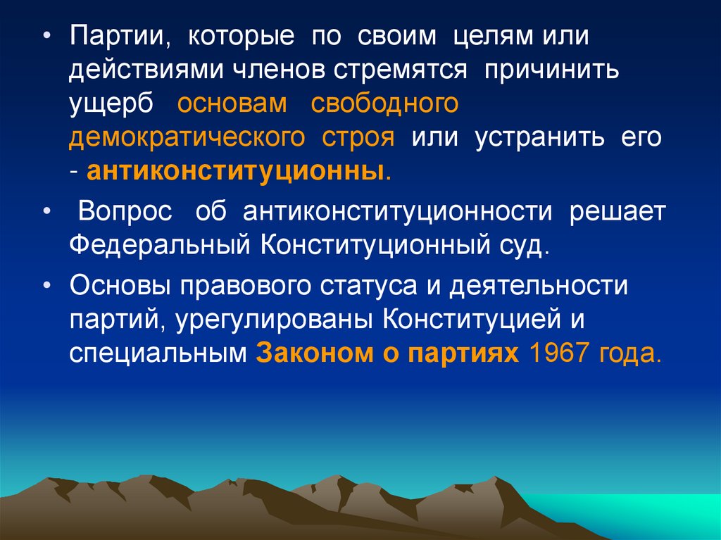 • Партии, которые по своим целям илидействиями членов стремятся причинить