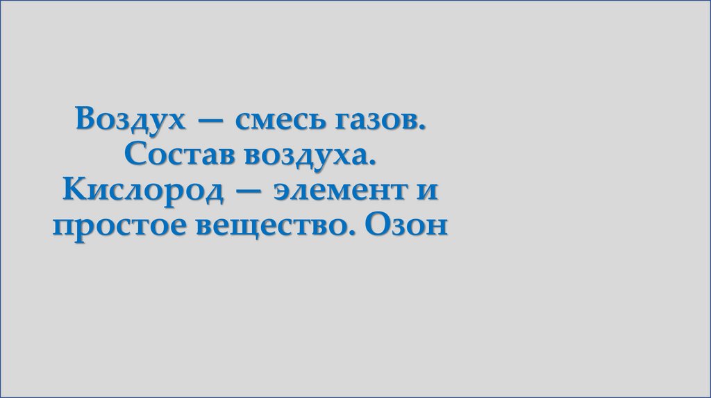 1. Воздух — смесь газов. Состав воздуха. Кислород — элемент и простое вещество. Озон