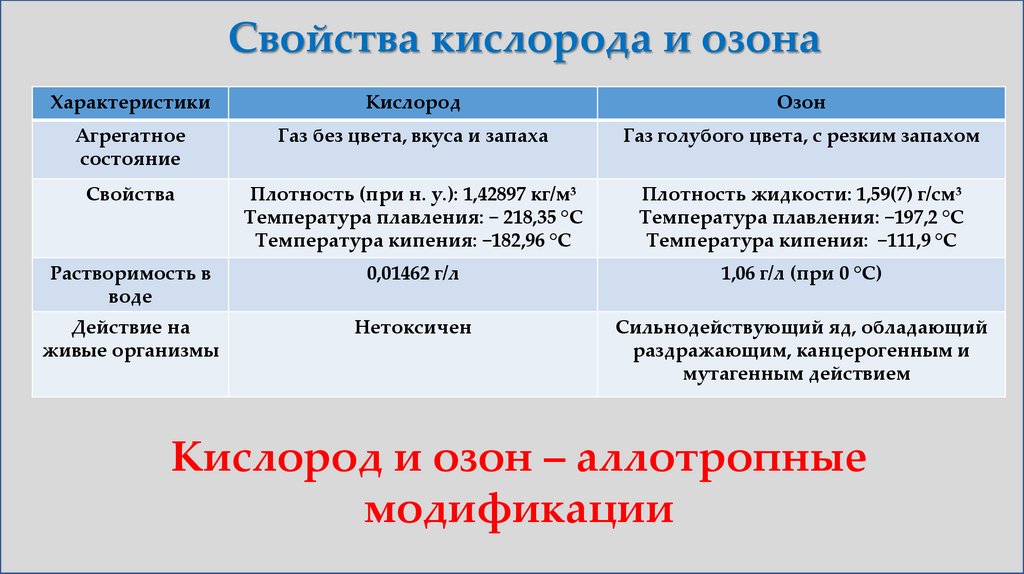 Свойства кислорода и озонаХарактеристики