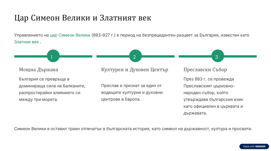 Цар Симеон Велики и Златният векУправлението на цар Симеон Велики (893-927 г.) е период на безпрецедентен разцвет за България, известен като