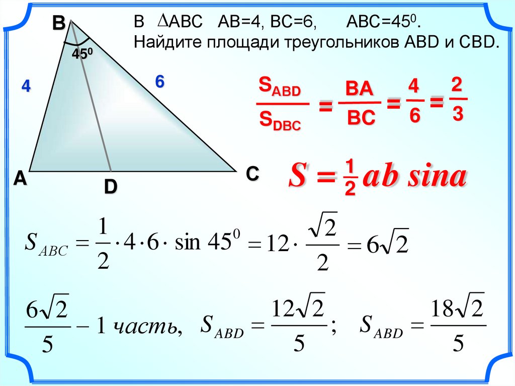 с.23 Докажите, что биссектриса треугольника делит егона треугольники, площади которых пропорциональны