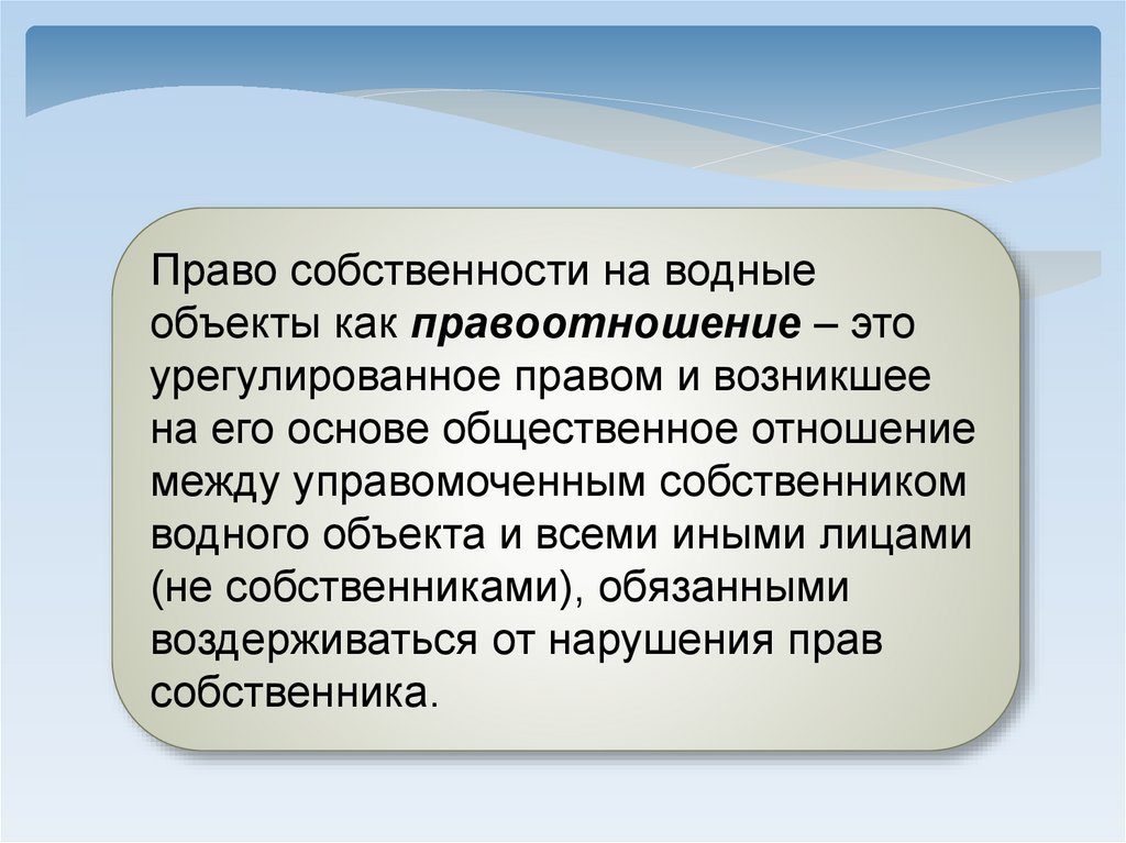 Право собственности на водныеобъекты как правоотношение – это