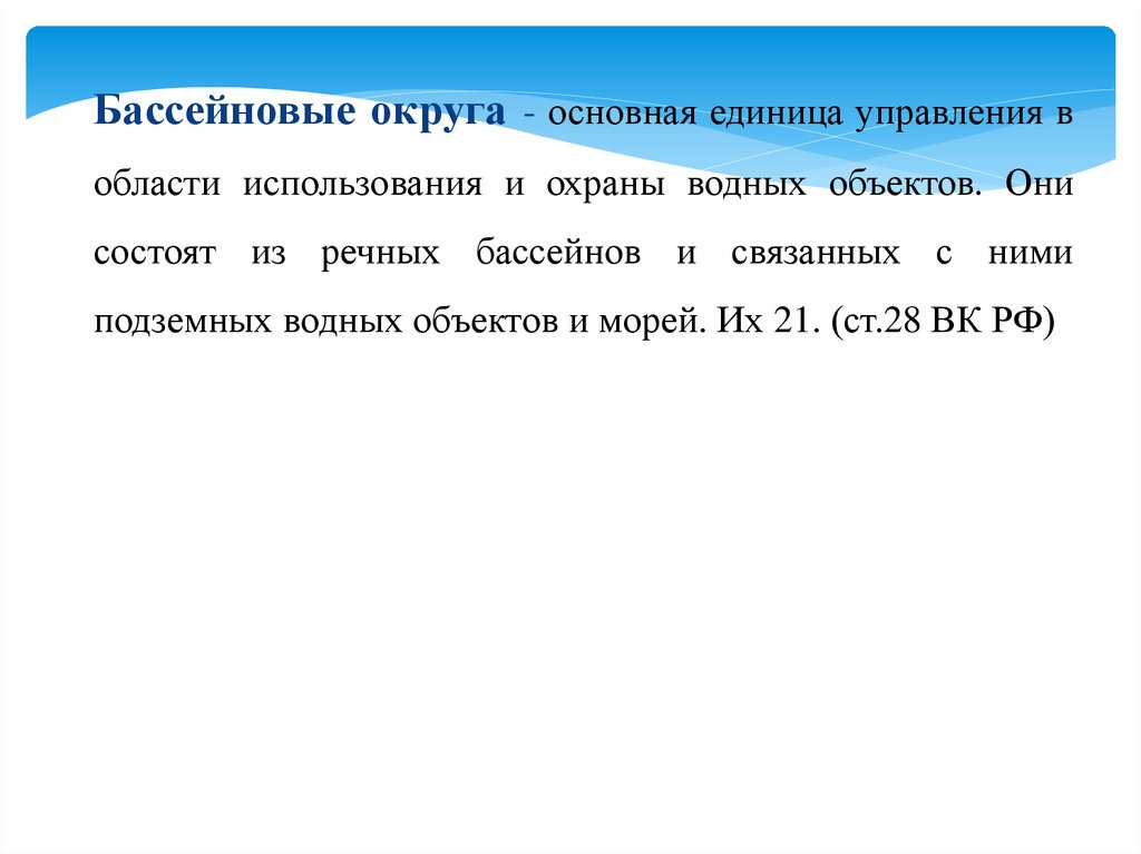 Бассейновые округа - основная единица управления вобласти использования и охраны водных объектов. Они