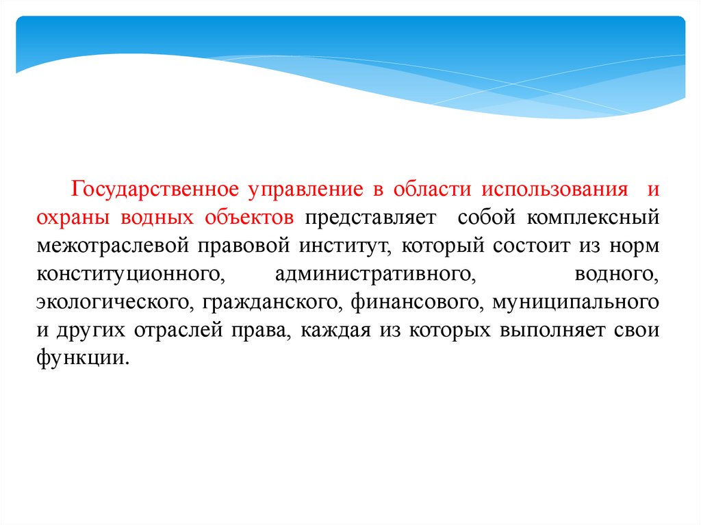 Государственное управление в области использования иохраны водных объектов представляет собой комплексный