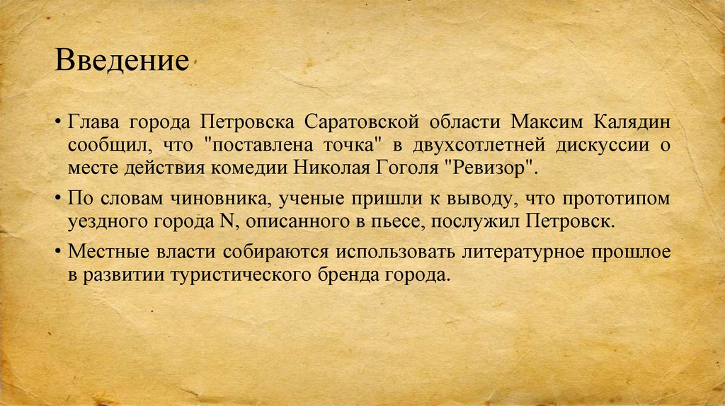 Введение• Глава города Петровска Саратовской области Максим Калядин