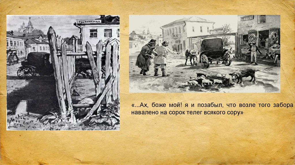 «...Ах, боже мой! я и позабыл, что возле того заборанавалено на сорок телег всякого сору»