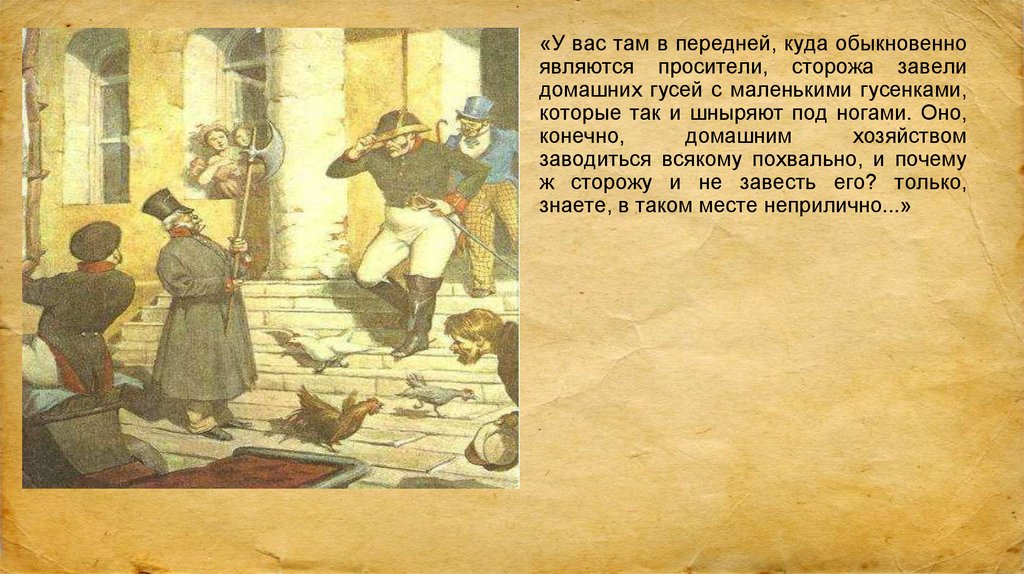 «У вас там в передней, куда обыкновенноявляются просители, сторожа завели