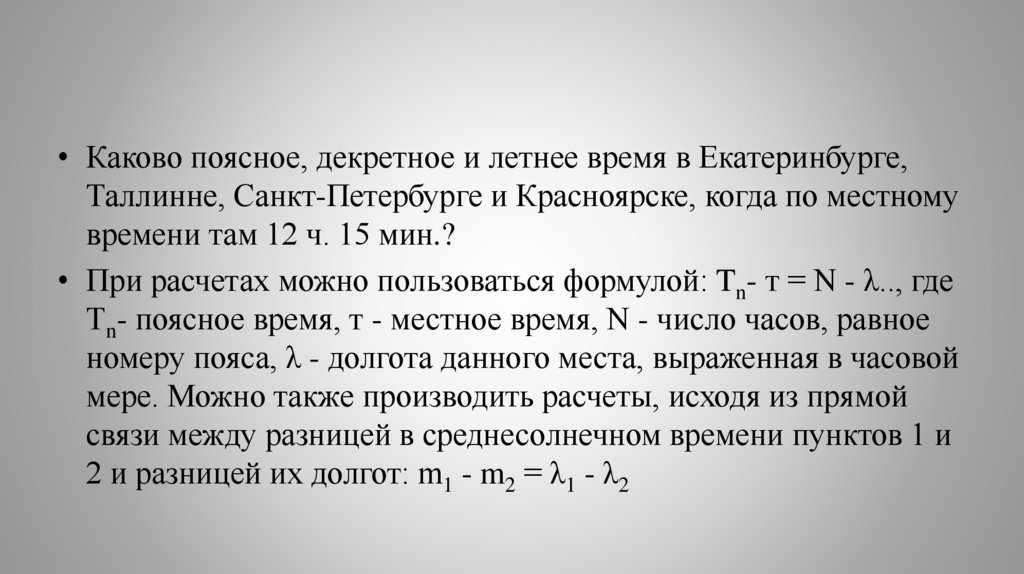 • Каково поясное, декретное и летнее время в Екатеринбурге,Таллинне, Санкт-Петербурге и Красноярске, когда по местному