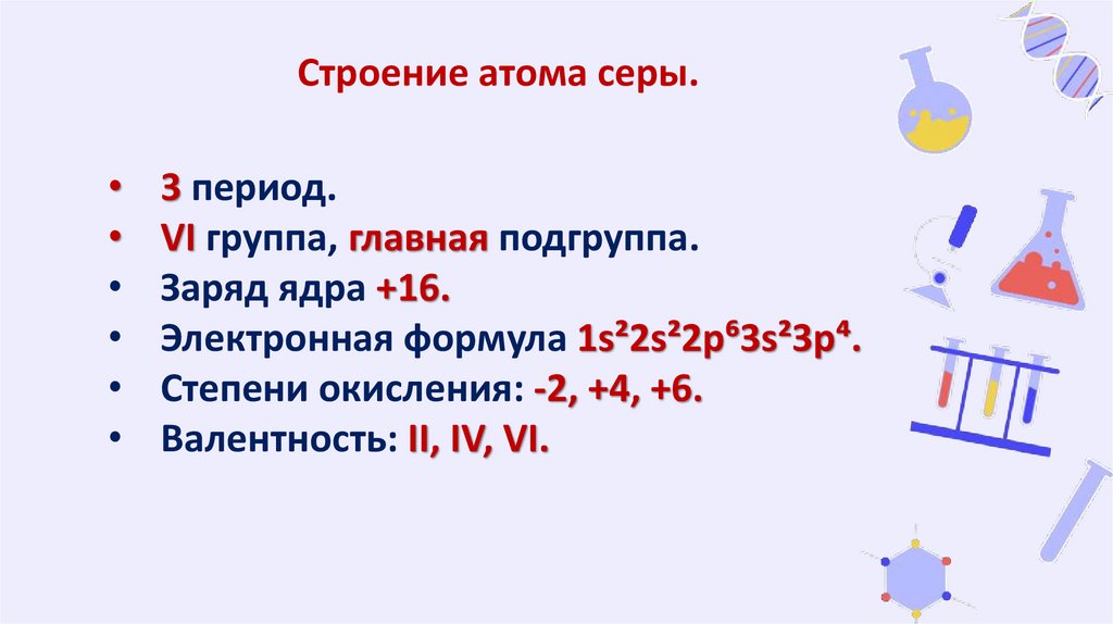 Строение атома серы.3 период.
