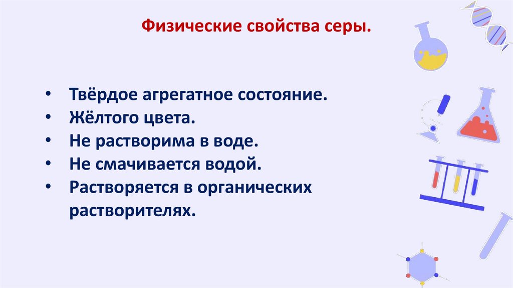 природе. Химические свойства серы.