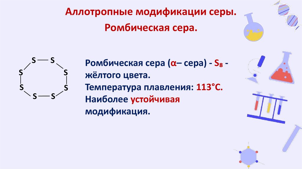 Аллотропные модификации серы.Ромбическая сера.