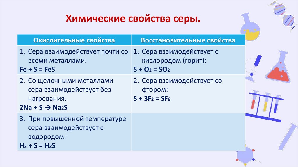Химические свойства серы.Окислительные свойства