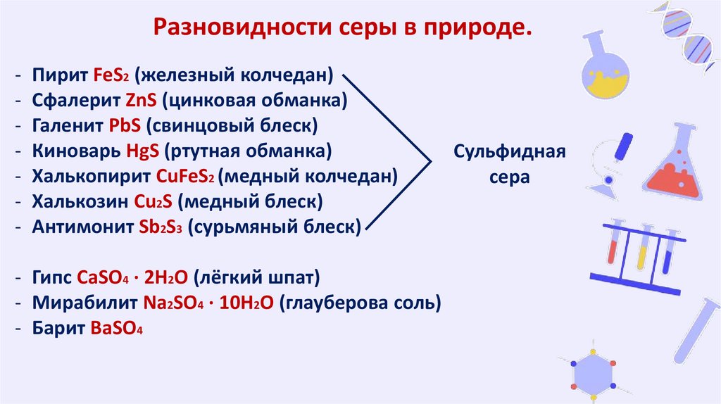 Сера в природе.• Сульфидная