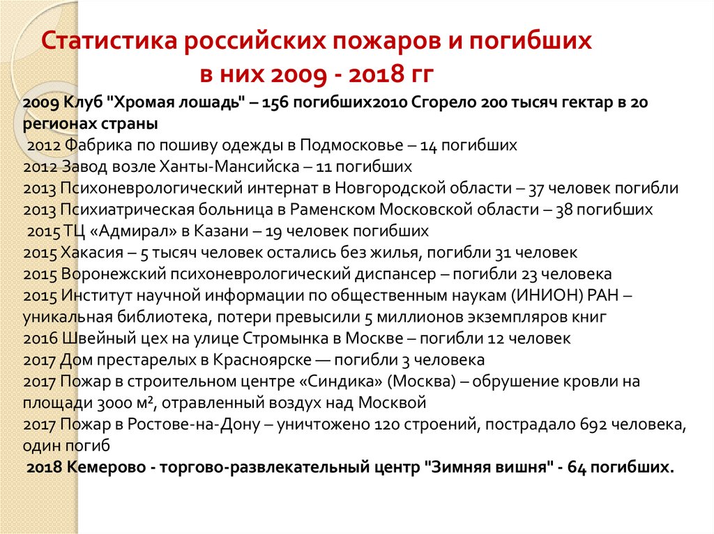 2009 Клуб "Хромая лошадь" – 156 погибших2010 Сгорело 200 тысяч гектар в 20