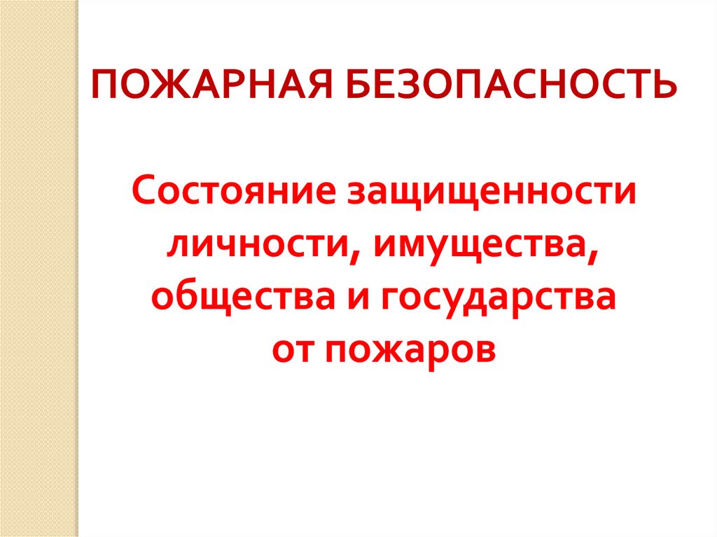 ПОЖАРНАЯ БЕЗОПАСНОСТЬСостояние защищенности