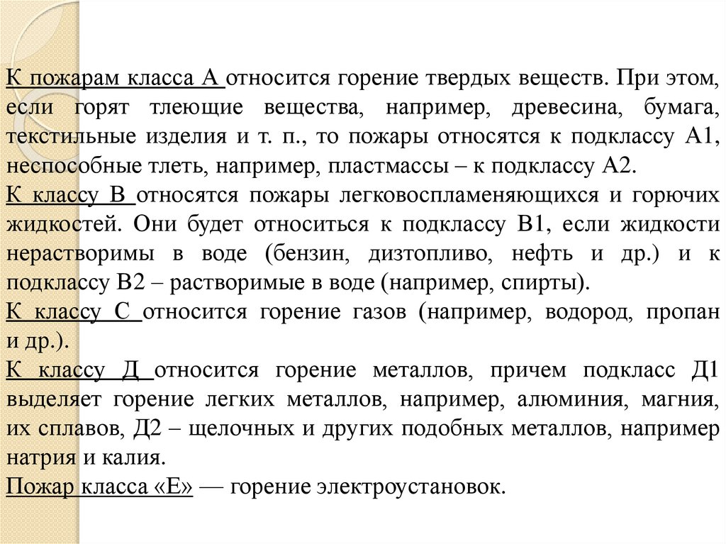 текстильные изделия и т. п., то пожары относятся к подклассу А1,
