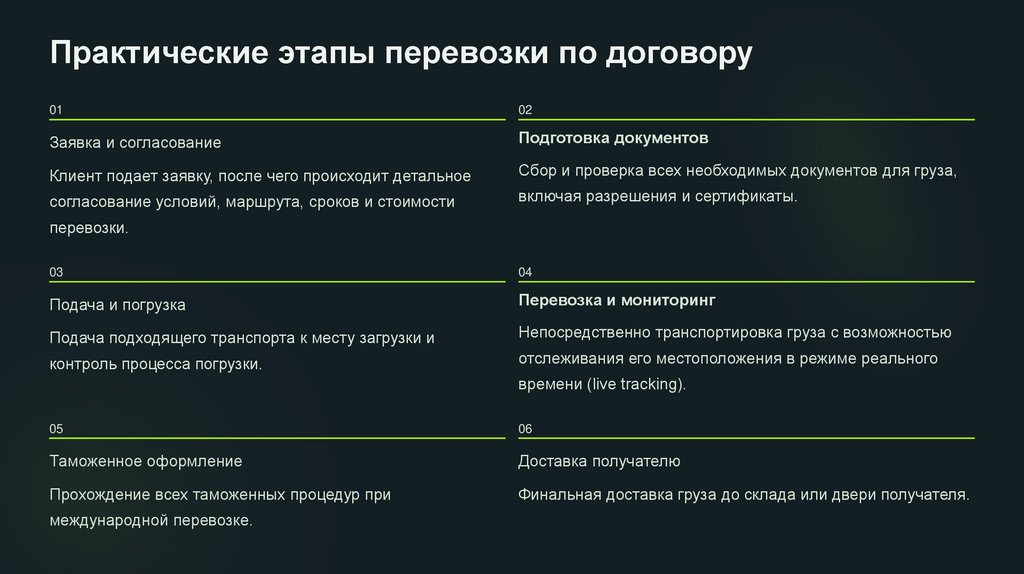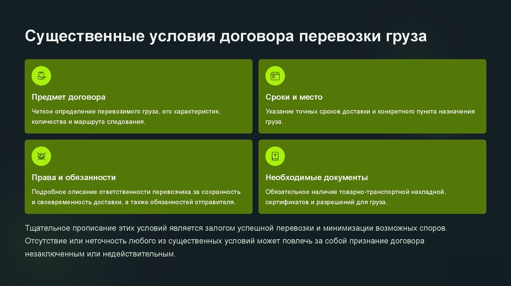 Тщательное прописание этих условий является залогом успешной перевозки и минимизации возможных споров.