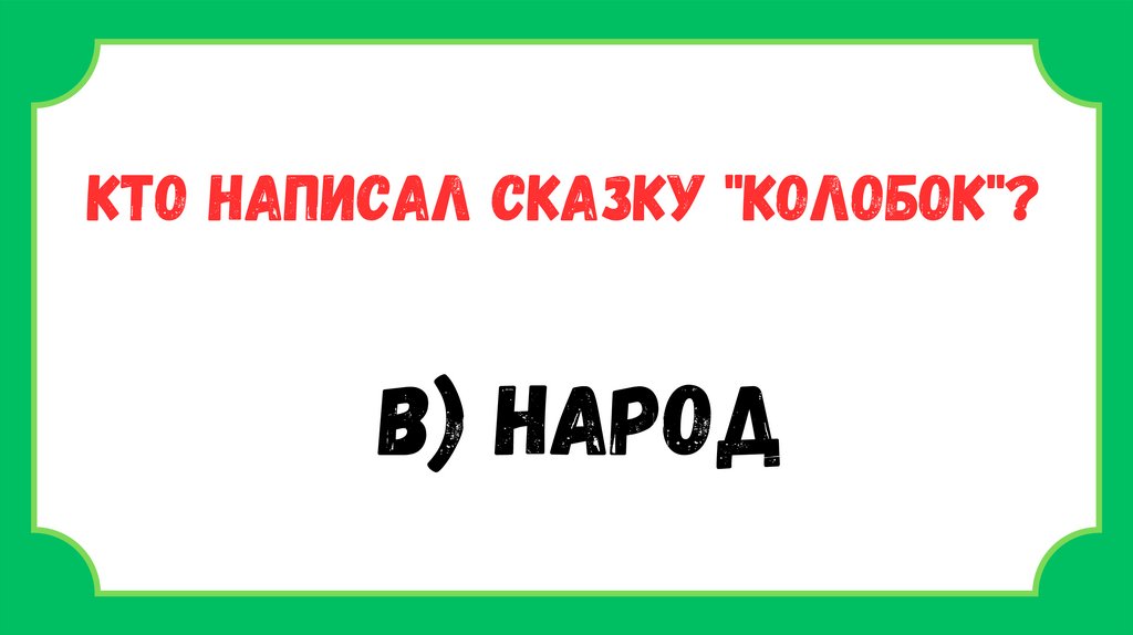 КТО НАПИСАЛ СКАЗКУ "КОЛОБОК"?В) Народ