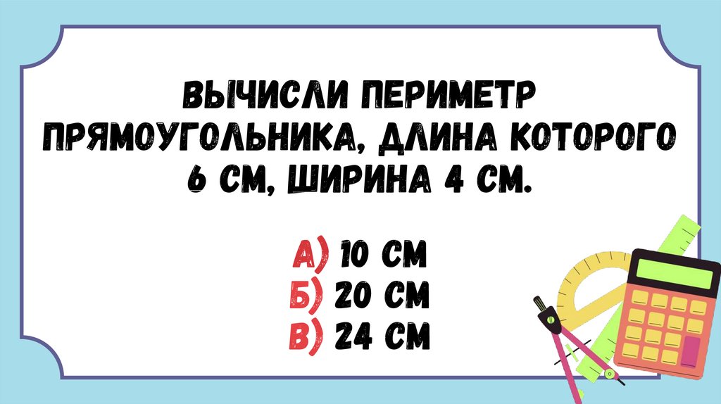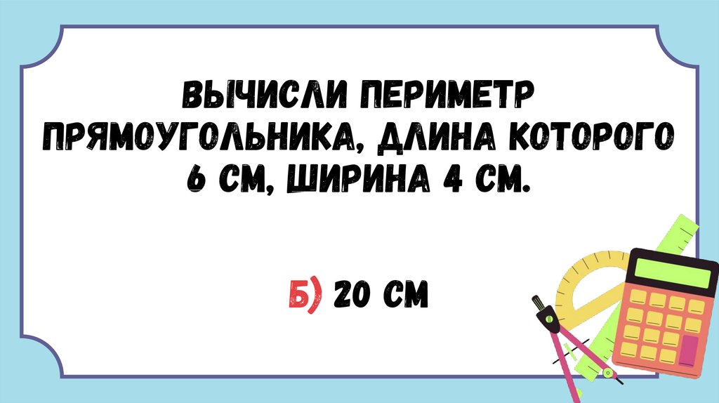 ВЫЧИСЛИ ПЕРИМЕТРПРЯМОУГОЛЬНИКА, ДЛИНА КОТОРОГО