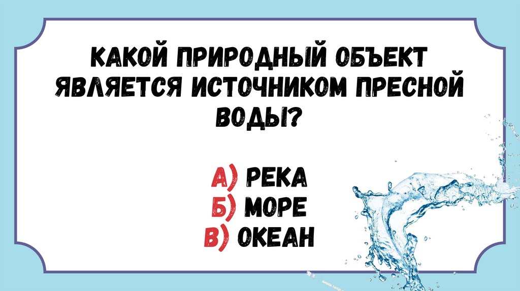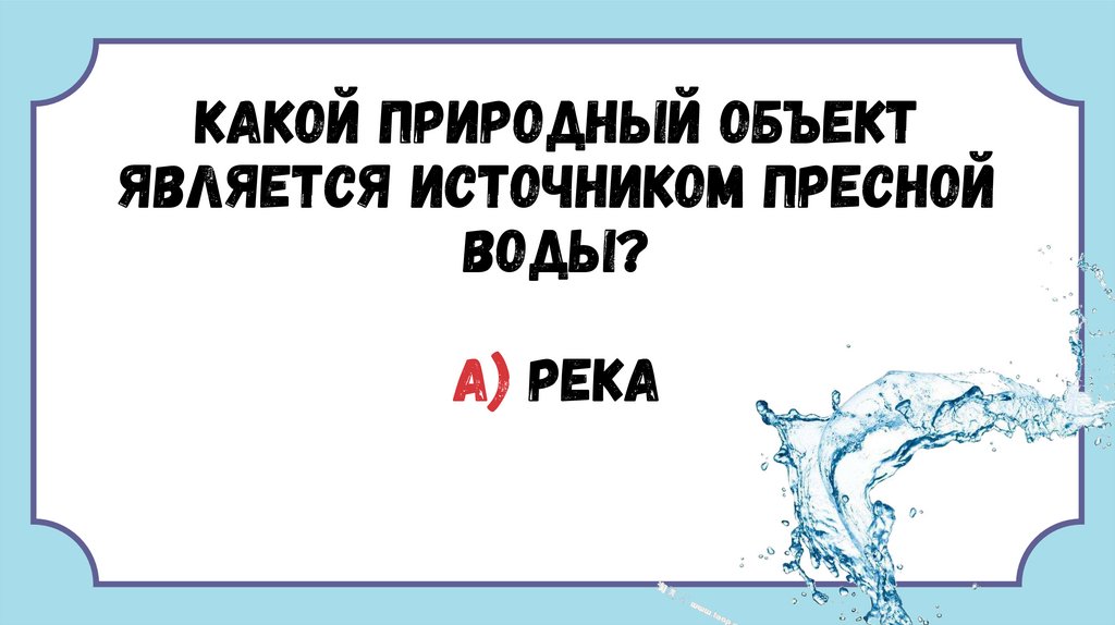 КАКОЙ ПРИРОДНЫЙ ОБЪЕКТЯВЛЯЕТСЯ ИСТОЧНИКОМ ПРЕСНОЙ
