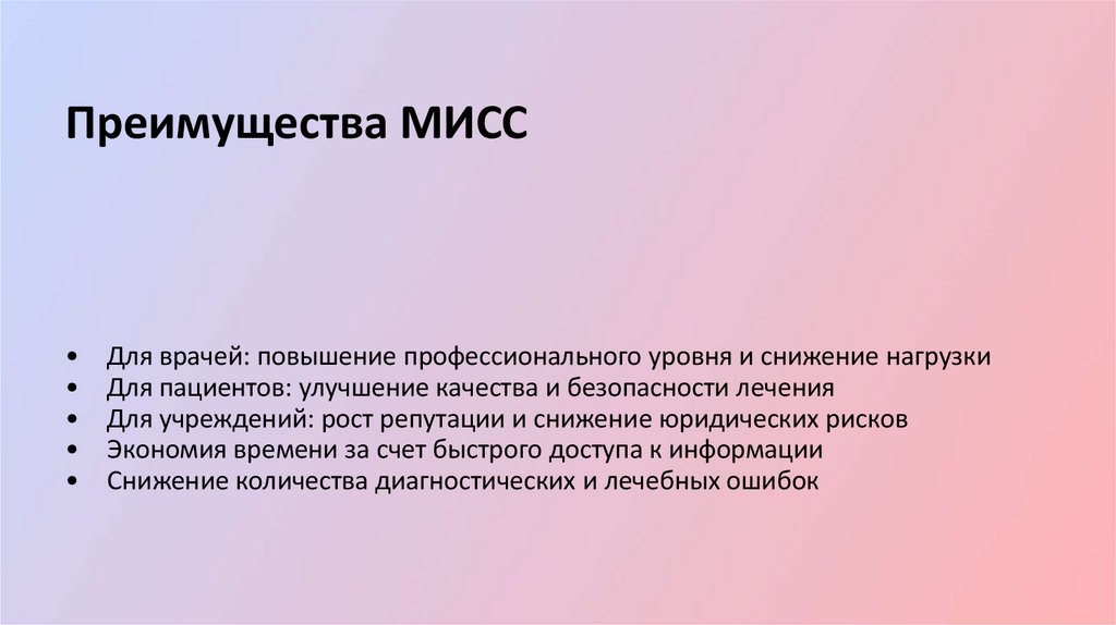 Преимущества МИССДля врачей: повышение профессионального уровня и снижение нагрузки