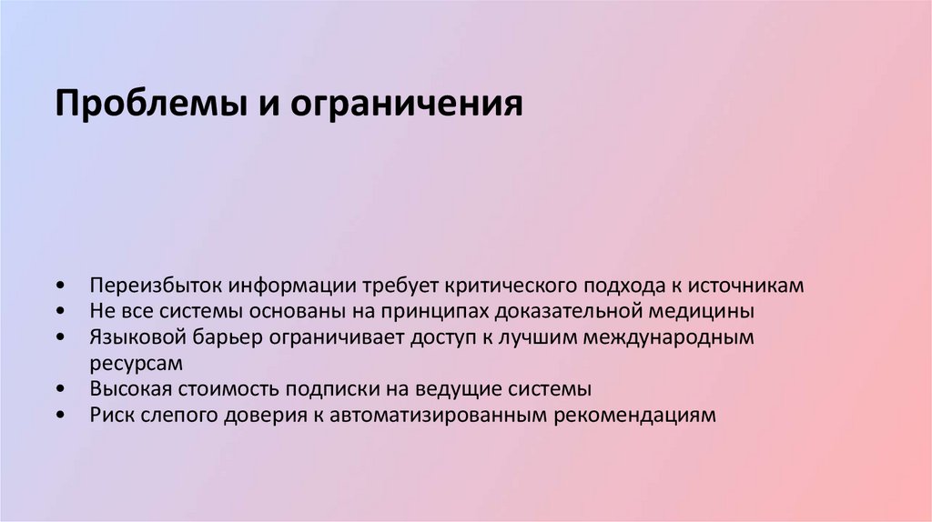 Проблемы и ограниченияПереизбыток информации требует критического подхода к источникам