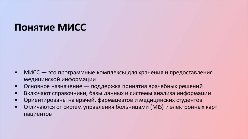 Понятие МИССМИСС — это программные комплексы для хранения и предоставления