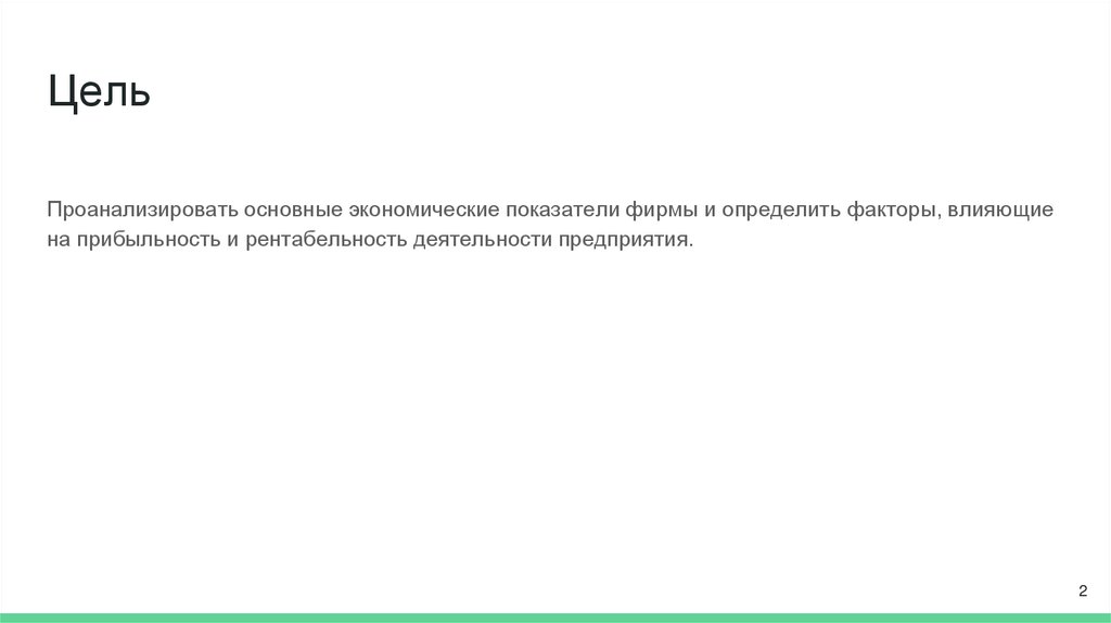 ЦельПроанализировать основные экономические показатели фирмы и определить факторы, влияющие