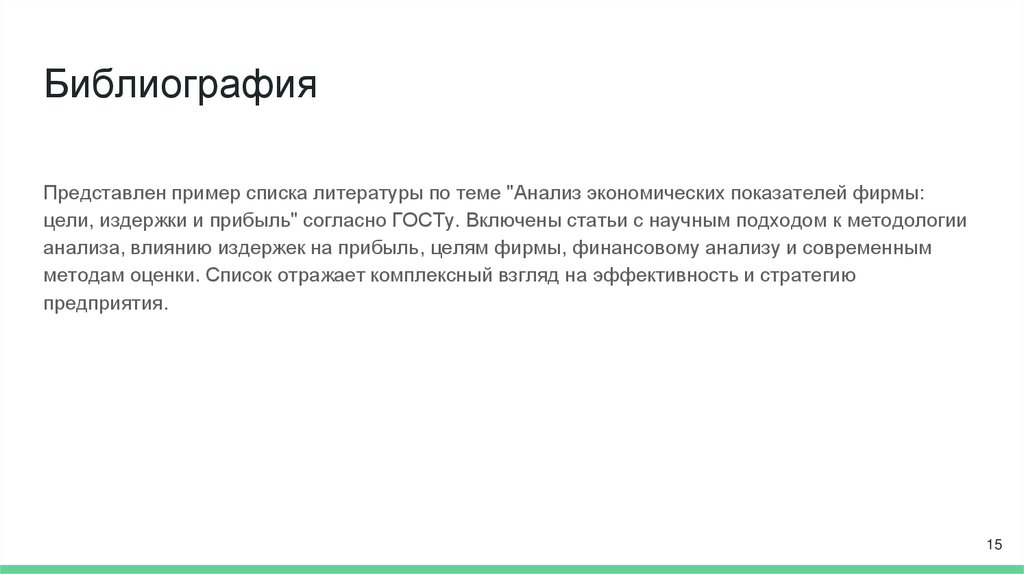 БиблиографияПредставлен пример списка литературы по теме "Анализ экономических показателей фирмы: